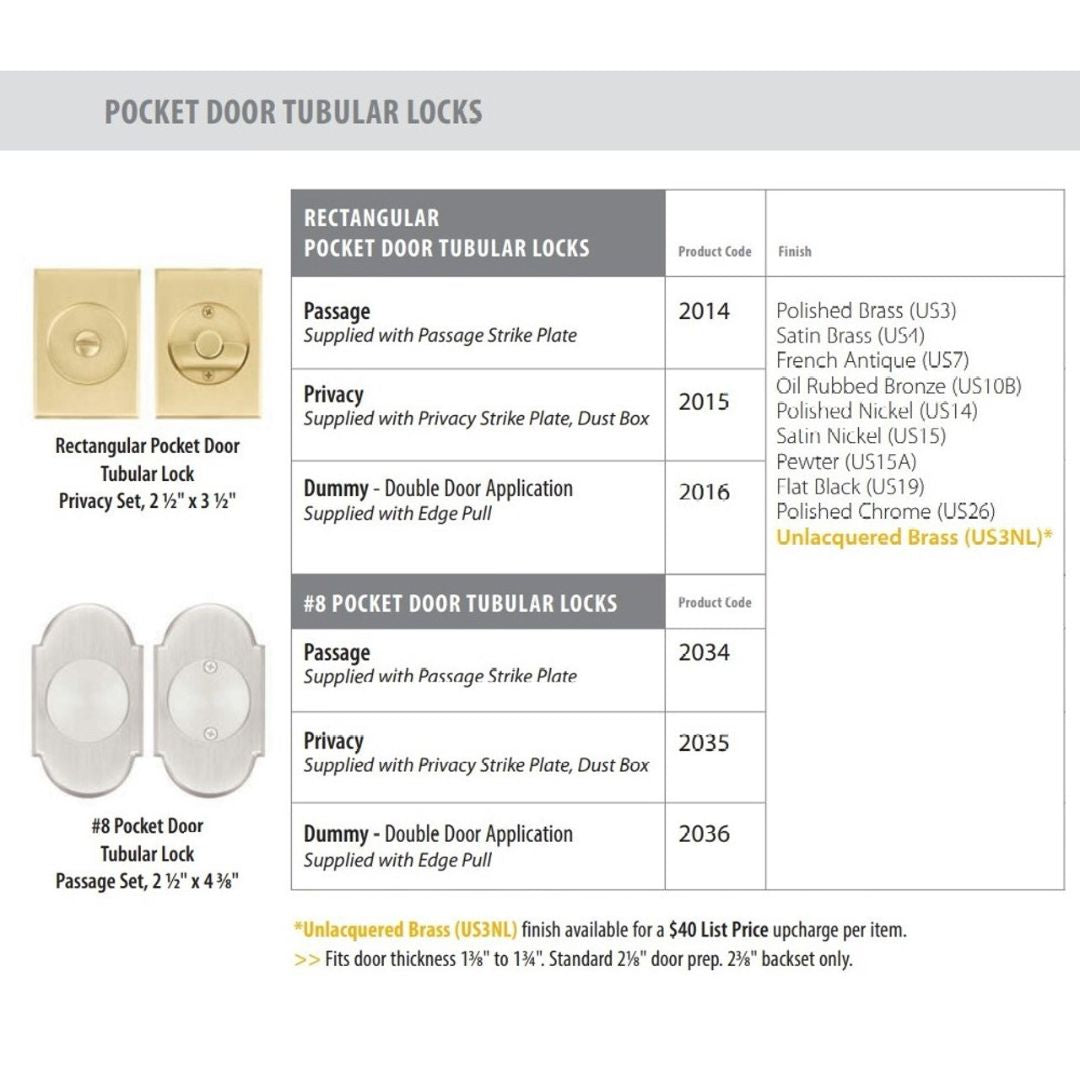 Emtek 2015 Rectangular Pocket Door Tubular Lock (2-1/2" x 3-1/2") - Pr – Golden Locks Inc .