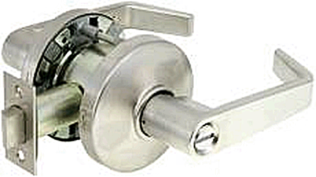 Handles, pulls, latches and other operating devices on accessible doors shall have a shape that is easy to grasp with one hand and does not require grasping, tight pinching or twisting of the wrist to operate. Lever operated mechanisms, push-type mechanisms and “U” shaped handles are acceptable designs. Lock Chassis: Cold rolled steel, with zinc dichromated finish for rust resistance. Latch retractor is precision cast steel. Extra long bearing sleeve offers added support for interlocking tubes and provides for extra lever rigidity. Requires standard 2-1/8" (53.97mm) bore through door.