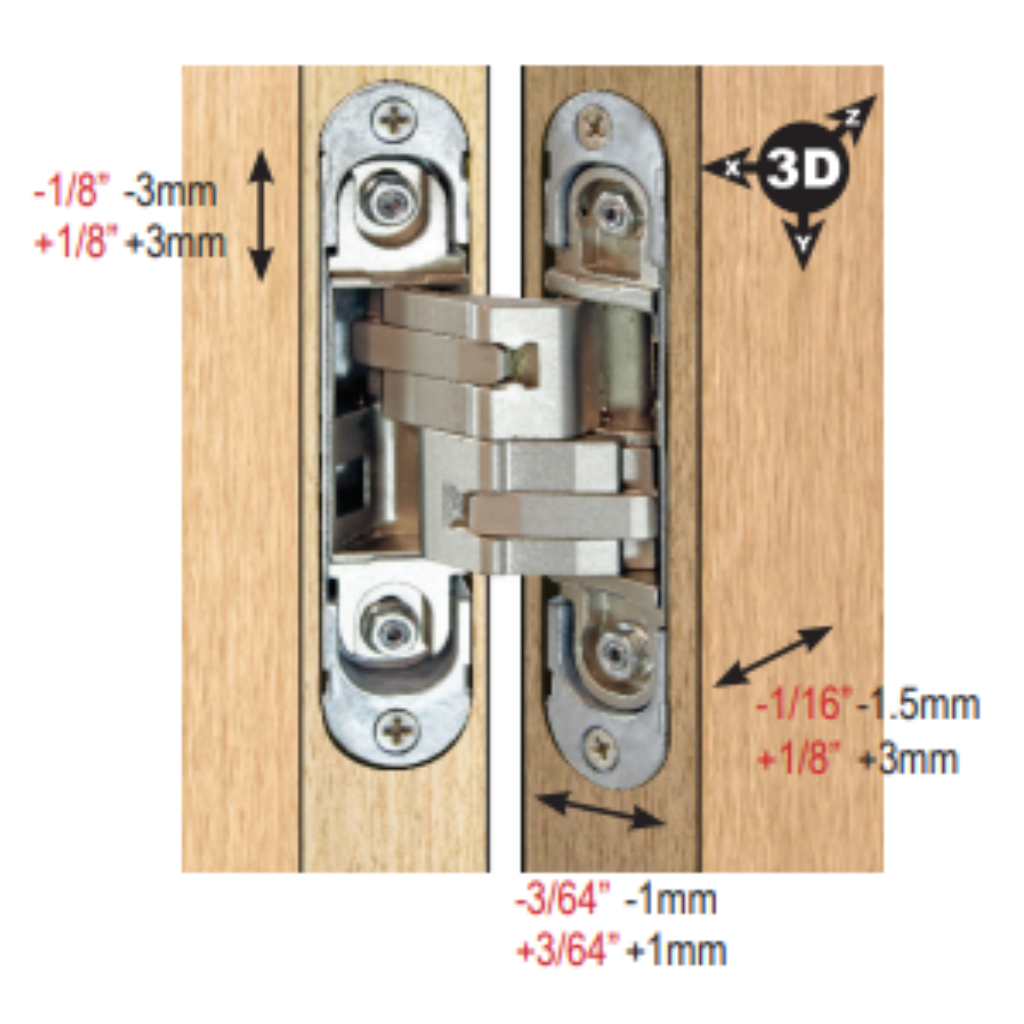 3D Adjustable Concealed Hinge for use with Wood and Hollow Metal Doors