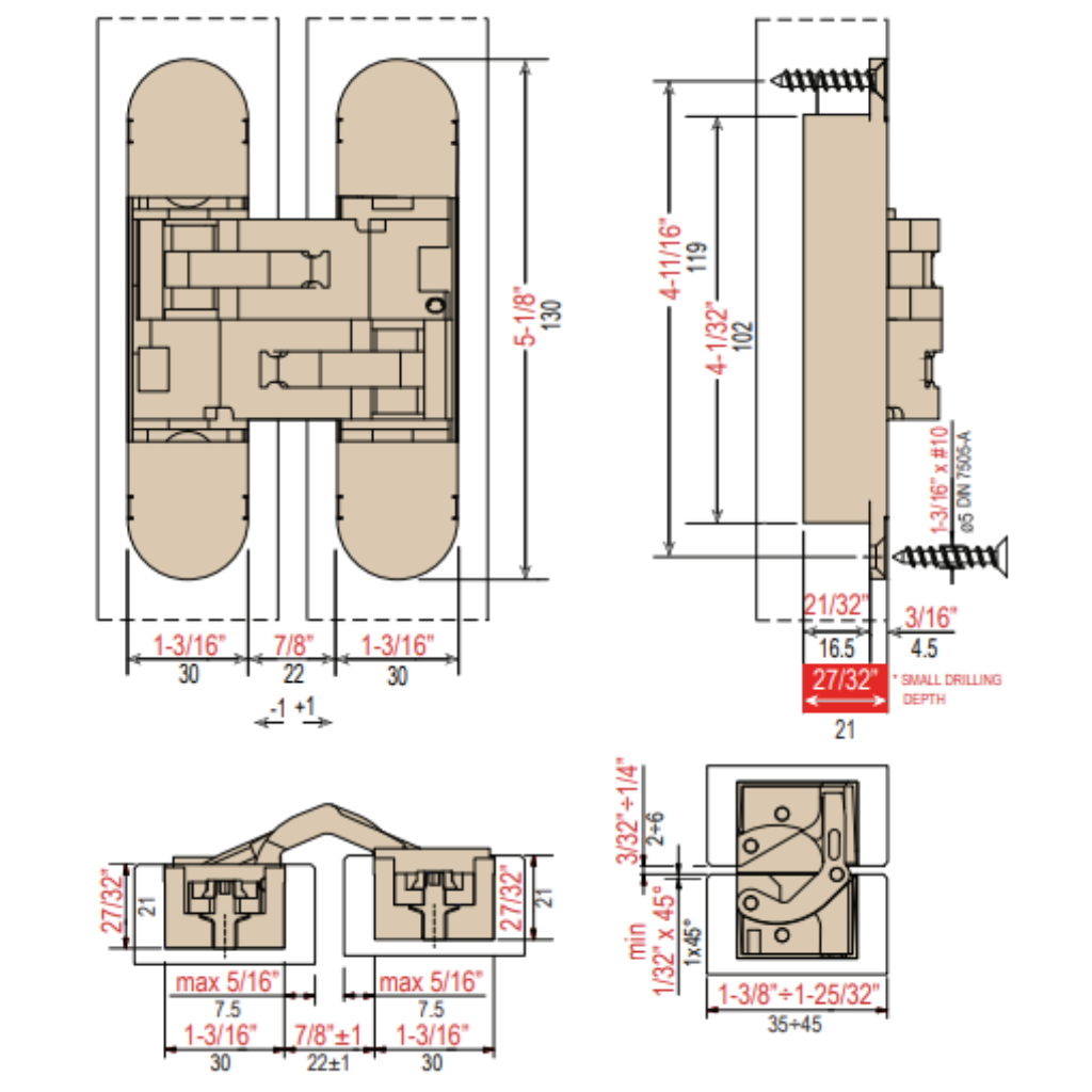 » Total Recessed Hinge Body (door and frame gap is very small)