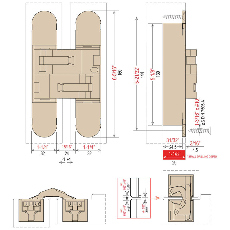 - Total Recessed Hinge Body (door and frame gap is very small)