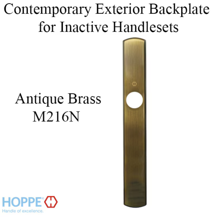 HOPPE CONTEMPORARY EXTERIOR BACKPLATE M216N FOR INACTIVE HANDLESETS - ANTIQUE BRASS