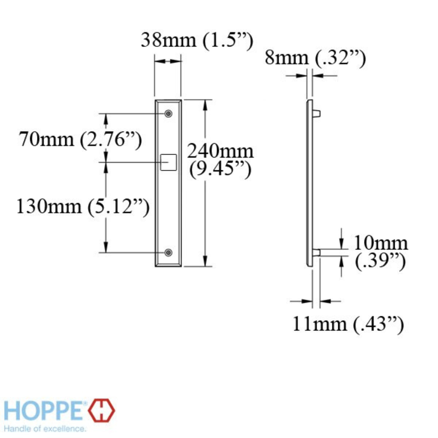 Replacement backplate to be used with HOPPE multipoint lock trim sets (handlesets)
