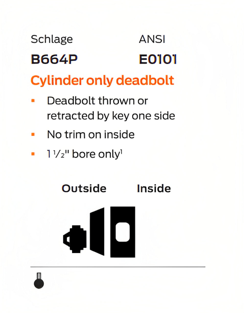 Function: B664 - Cylinder only deadbolt - ANSI E0101