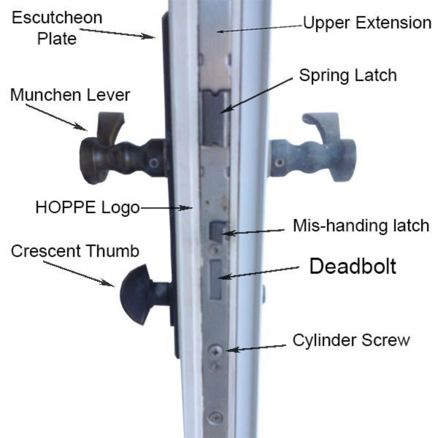HOPPE 3-POINT MULTIPOINT LOCK, DOOR HEIGHTS 79.57 - 83.50", 1-3/8" BACKSET, SHOOTBOLT VERSION