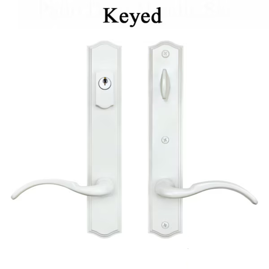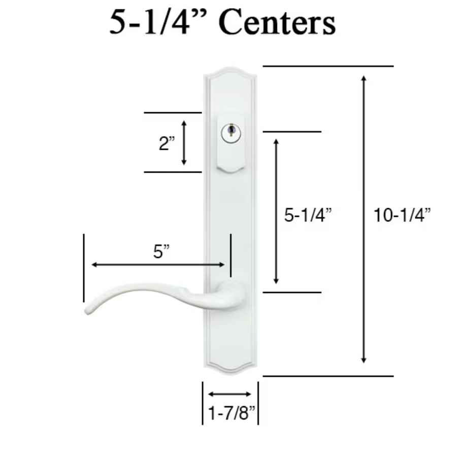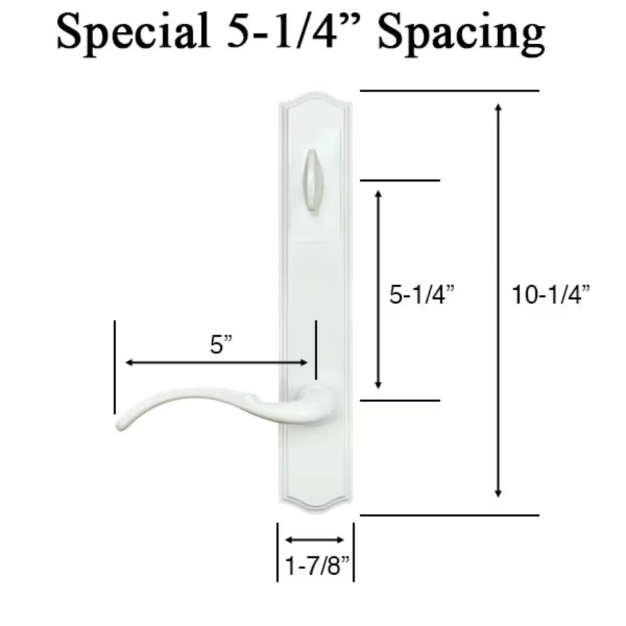 Unique Hinged Patio Door Handle trim with 5-1/4 inch Handle to Thumb turn spacing