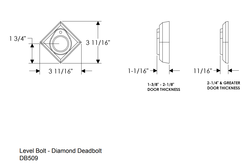 Diamond Dead Bolt (DB509): 3 11/16" x 3 11/16"