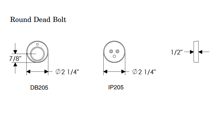 Round Metro Dead Bolt (DB205): 2 1/4" x 2 1/4"