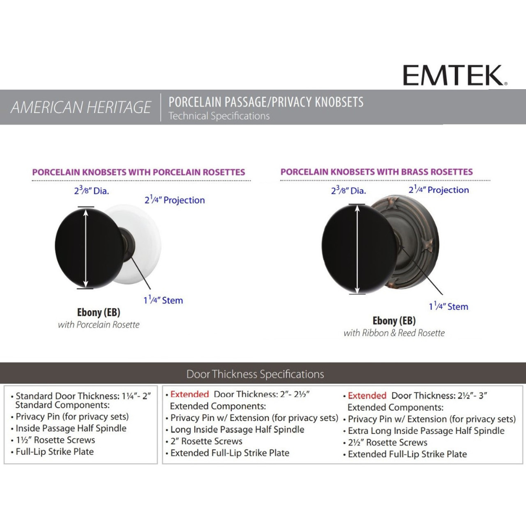 Emtek Porcelain Knobsets, Ebony Knob, Dummy (Pair)