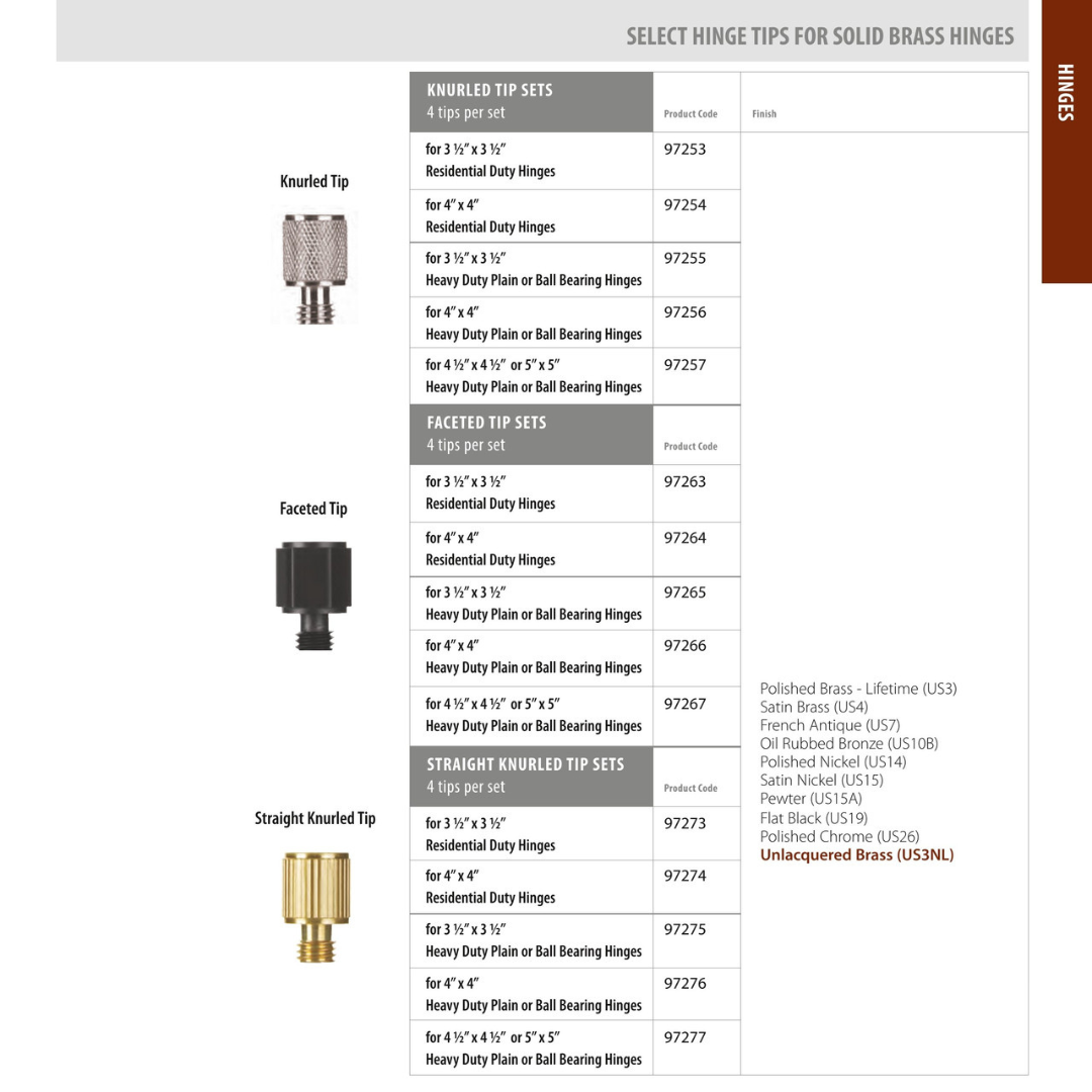 Emtek Select Straight Knurled Hinge Tips (4 tips per set)