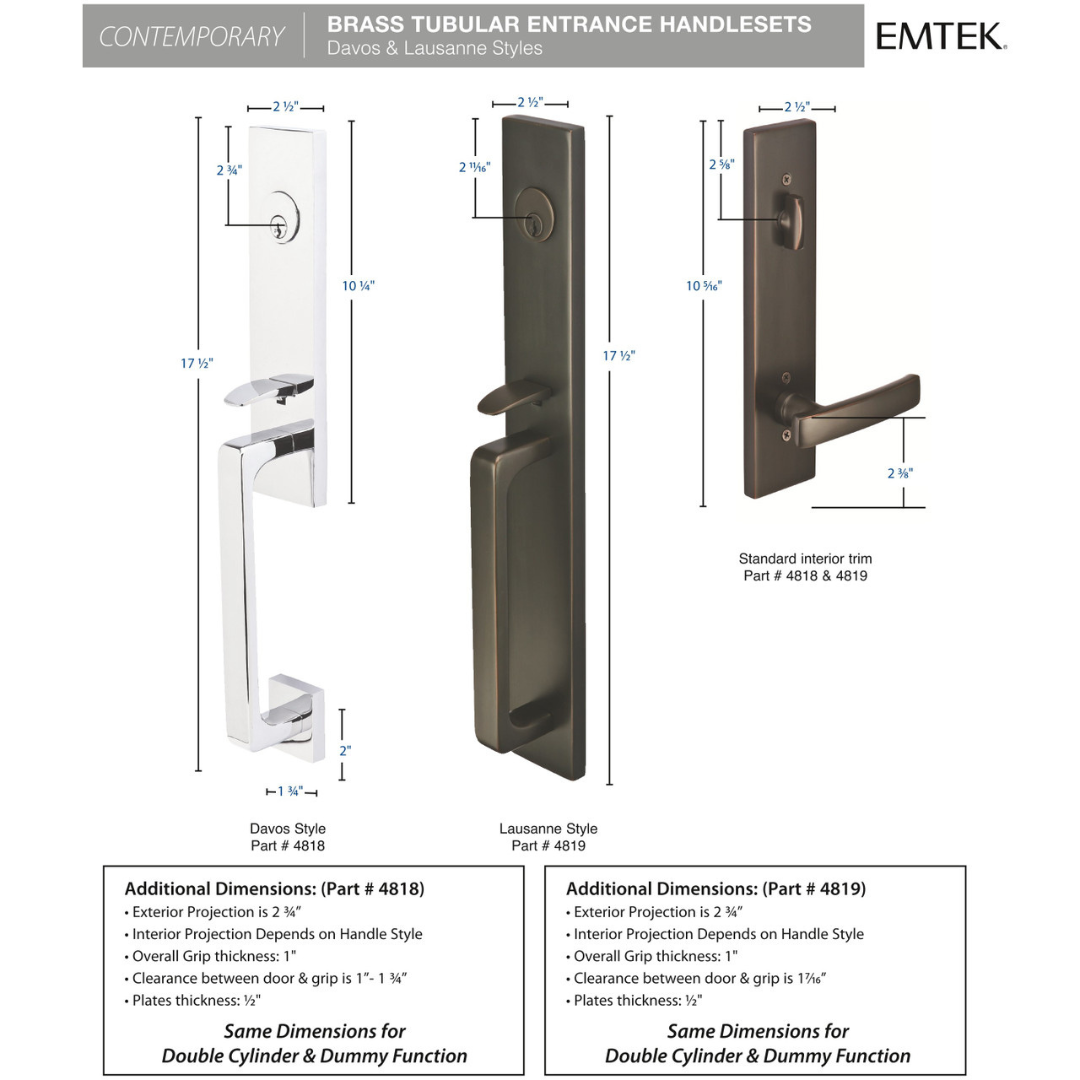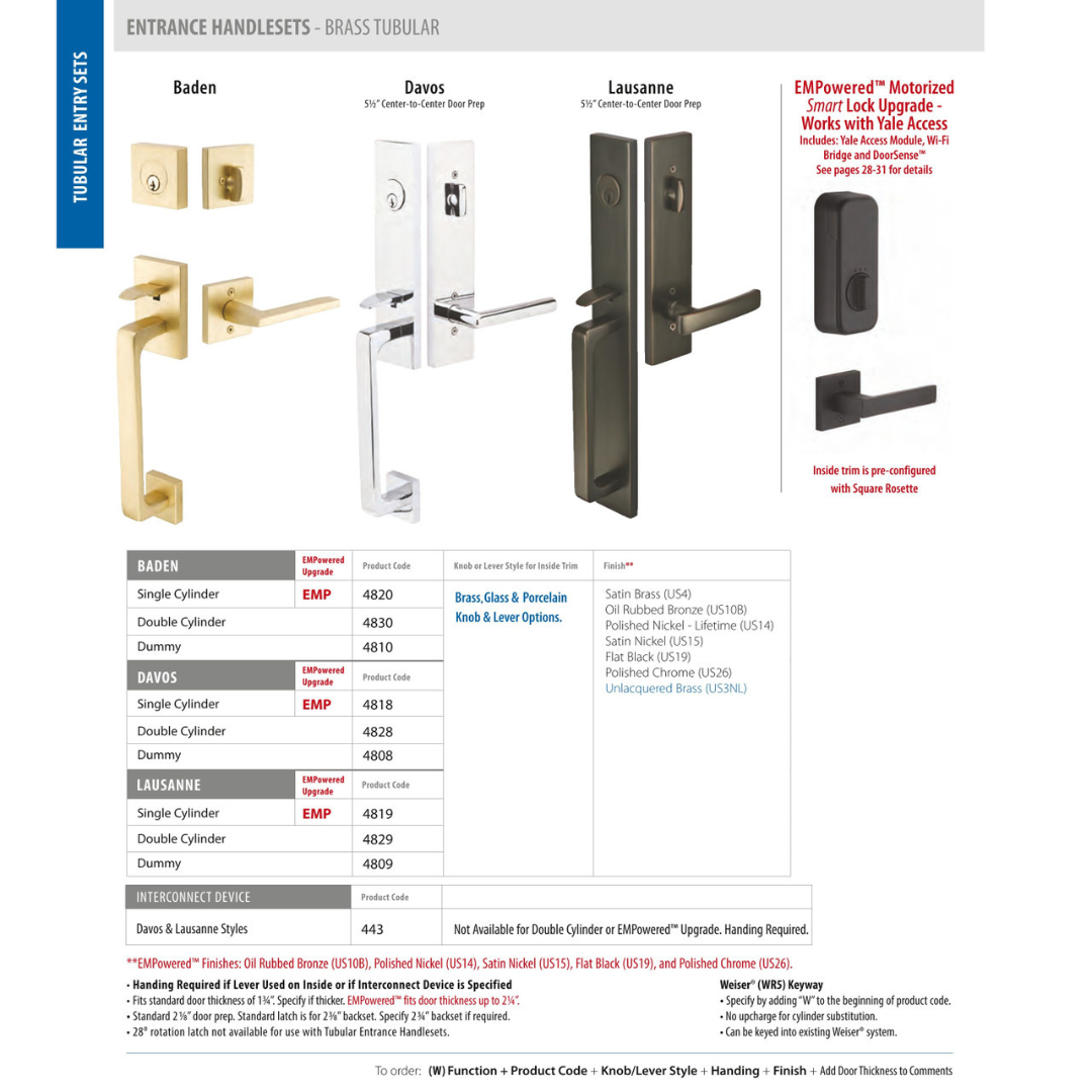 Emtek EMP4819 Lausanne Single Cylinder Entrance Handleset - Brass Tubular - EMPowered Upgrade