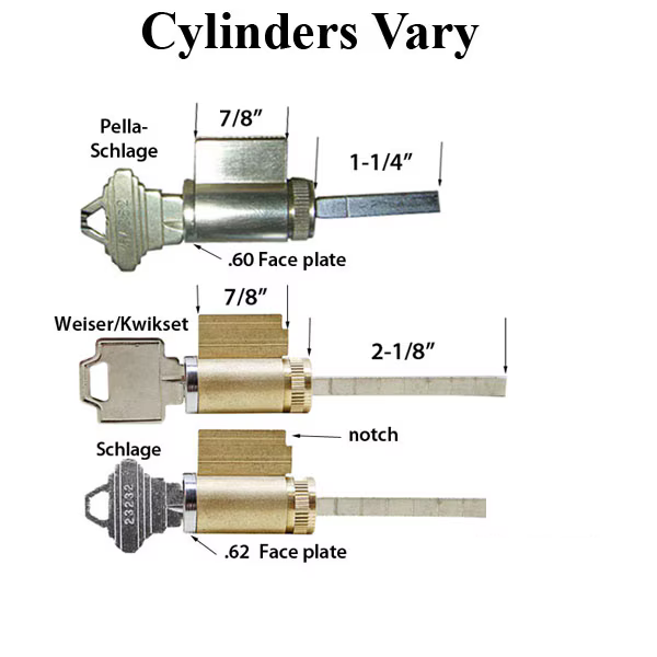 The US Cylinder tailpiece connects the locking cylinder to the mortise case and to the inside Thumb turn thereby, allowing the locking feature of the mortise case to be operational.