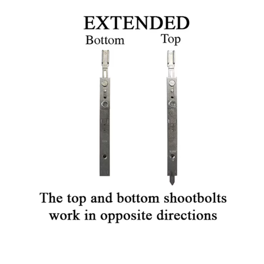 Active door deadbolt enters receiving hole in face of inactive lock but only when inactive handles have been lifted and shootbolts engaged. When handles of inactive lock are turned up and shootbolts engaged, the mechanism in the receiver hole lifts up allowing the deadbolt to fit inside. SO BASICALLY: unless passive door is shut and shootbolts engaged, active door cannot be locked.