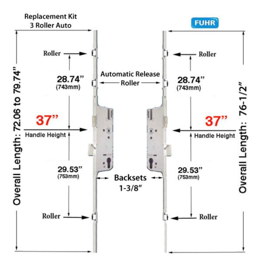 3 Roller Automatic Mutipoint Lock Replacement Kit with 37 inch Handle height