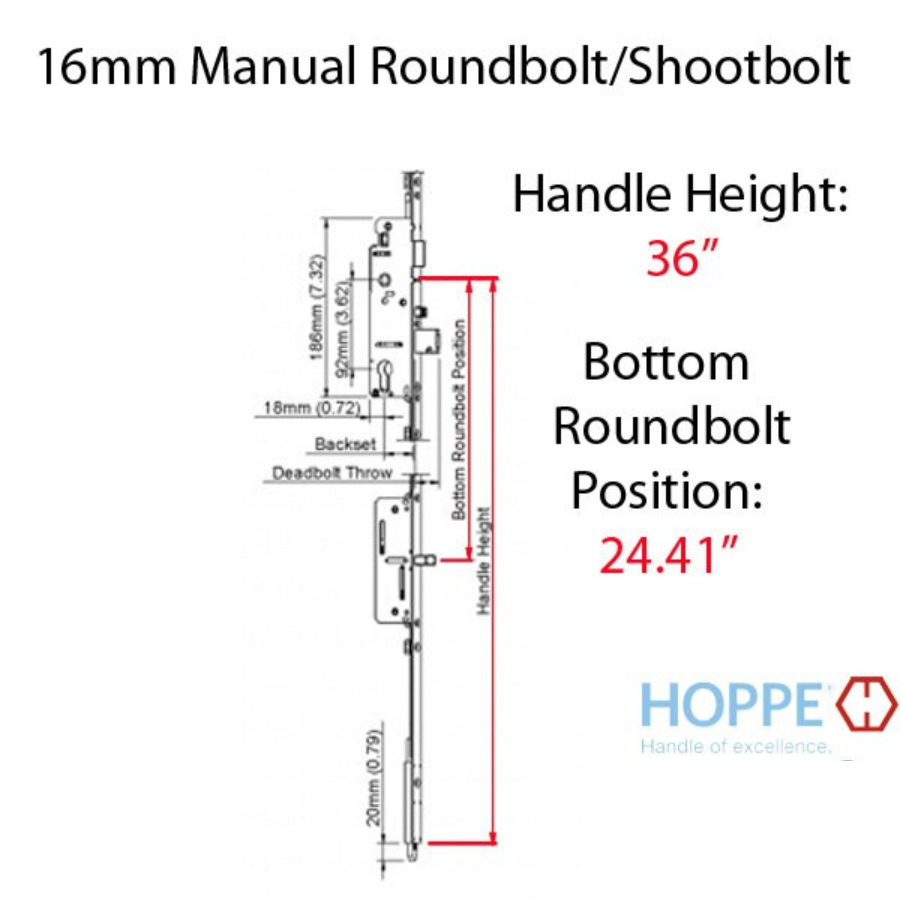 Hoppe 16mm Manual Gear, 35/92, Shootbolt-Roundbolt @ 24.41", 1" D/B