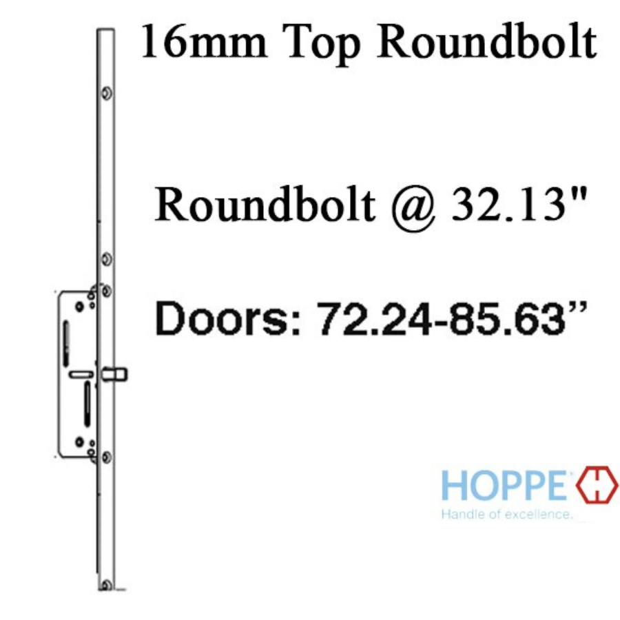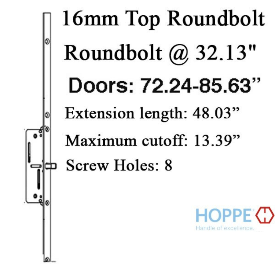 Hoppe Roundbolt Top Extension With Top Roundbolt at 32.13". For doors from 72.24" to 85.63" tall. Extension Length: 48.03". Manual roundbolt top extension.