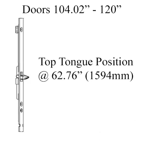 When both Upper and Lower assemblies are connected fits doors from 104.02-120 inches tall with 36 inch handle height.