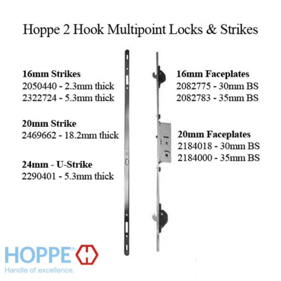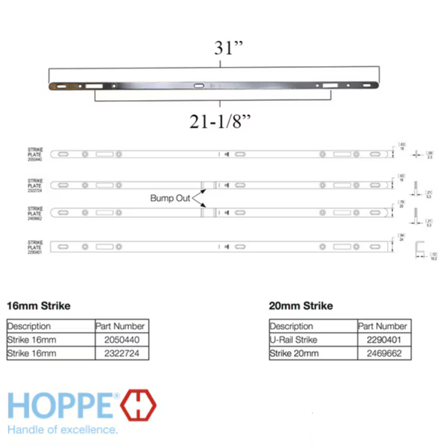 HOPPE 2 POINT SLIDING DOOR LOCK STRIKE, 16MM FACE, 2.3MM THICK, 30" LE – Golden Locks Inc .
