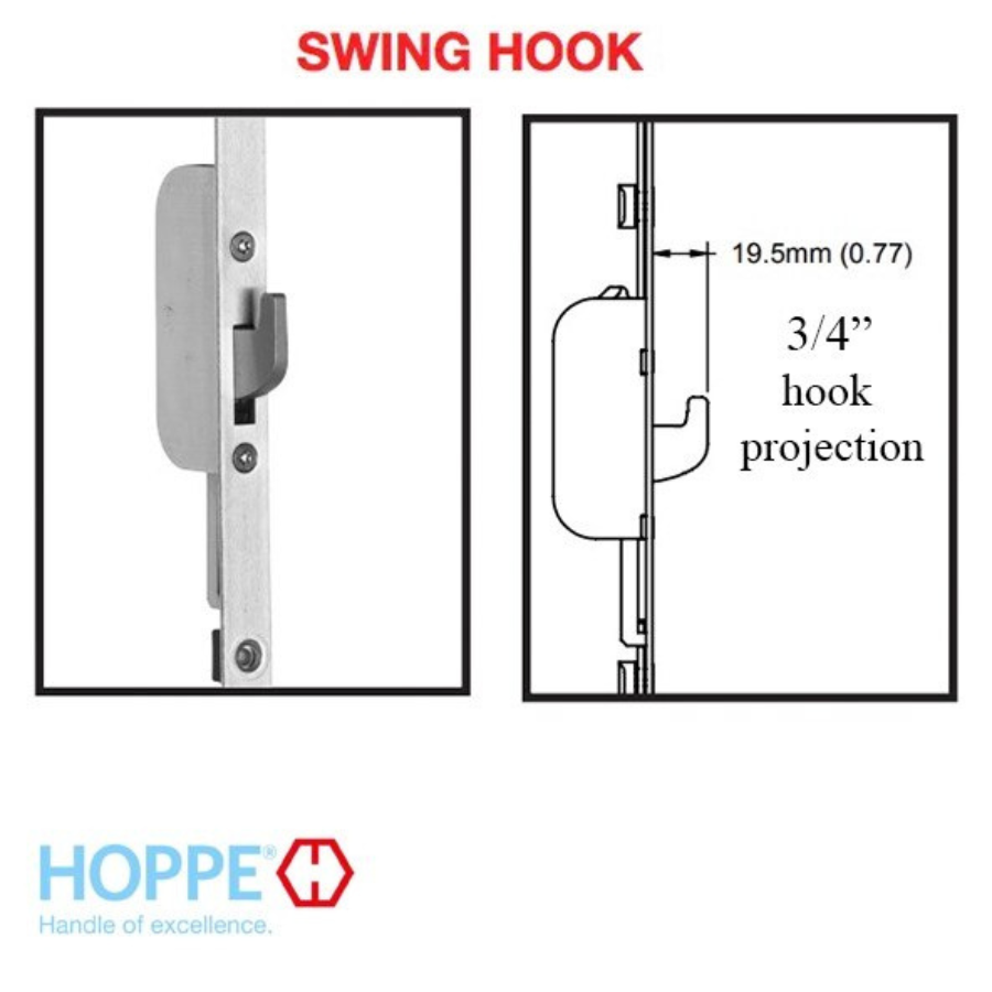 Hoppe 16mm Top Extension with one (1) Swing Hook @ 35.43 inches above handle.