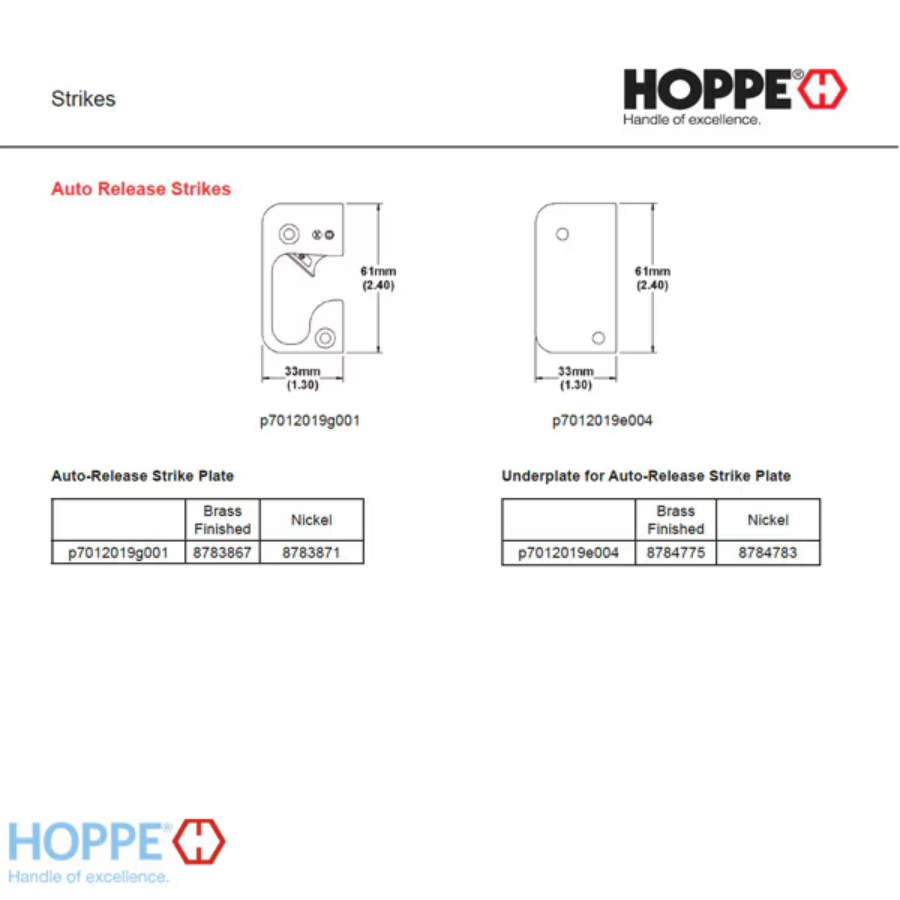 Hoppe Auto-Release Strike Plate for Automatic locks