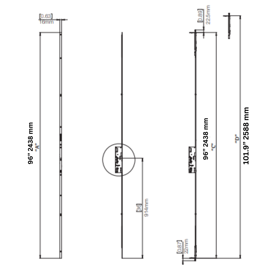 Dimension “C" : 96” 2438 mm