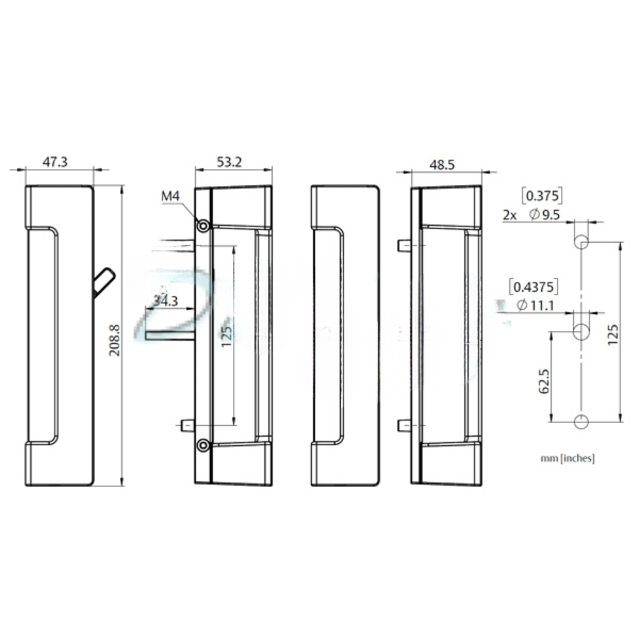 Interlock Crest series sliding patio door handle set. Color: White. For 1.4" to 1.8" thick doors. Center latch handle set with square drive thumbturn. Crest 200 series handle 0210/0249. Includes interior and exterior handles, screws and thumbturn. Interlock PS01-0231-000.
