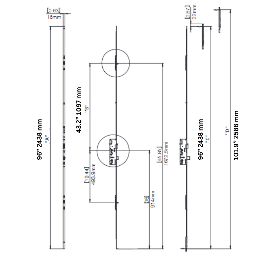 Dimension “A”: Door Panel Height 96” 2438 mm