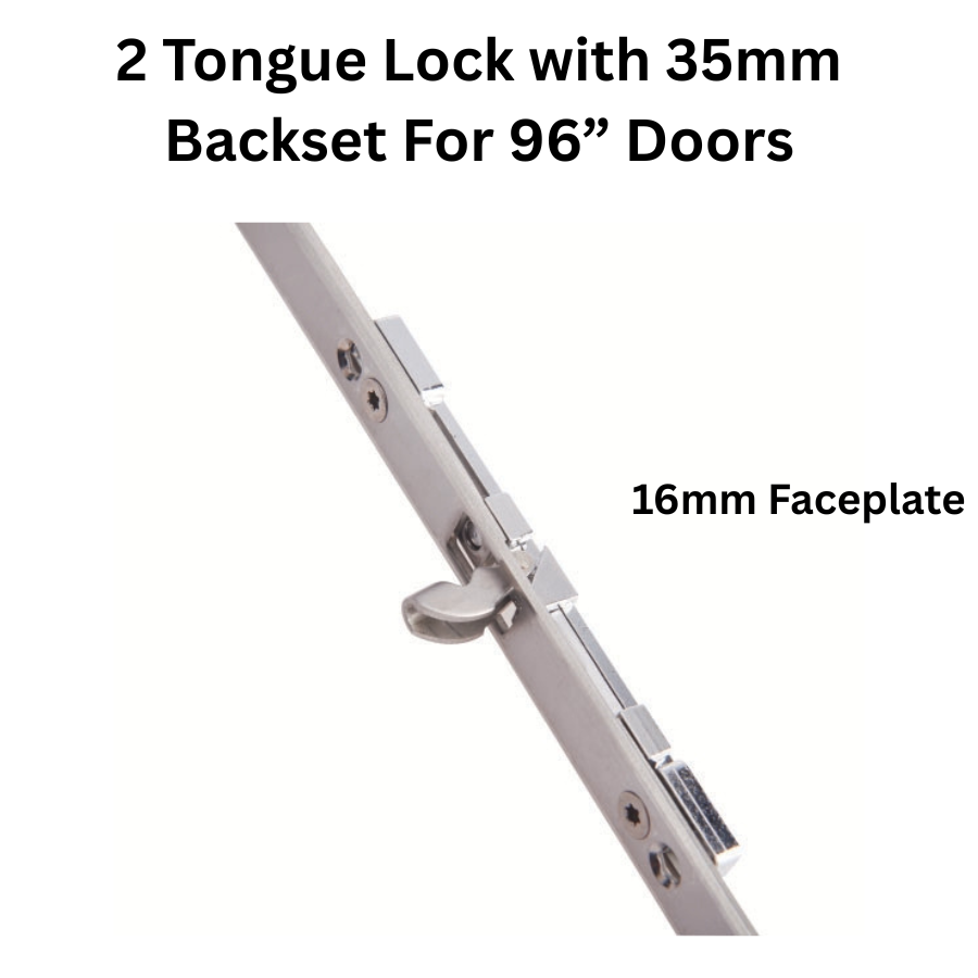 Interlock 2 Tongue Lock with 16mm Faceplate, 35mm Backset For 96” Doors