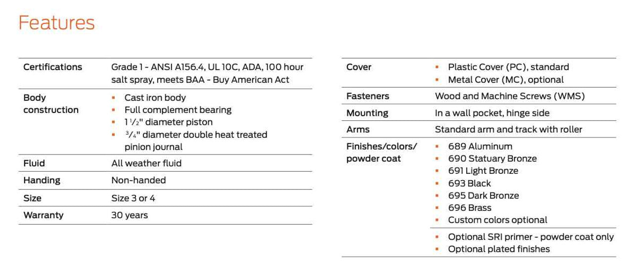 - Tested and certified under ANSI/BHMA A156.4 Grade 1
