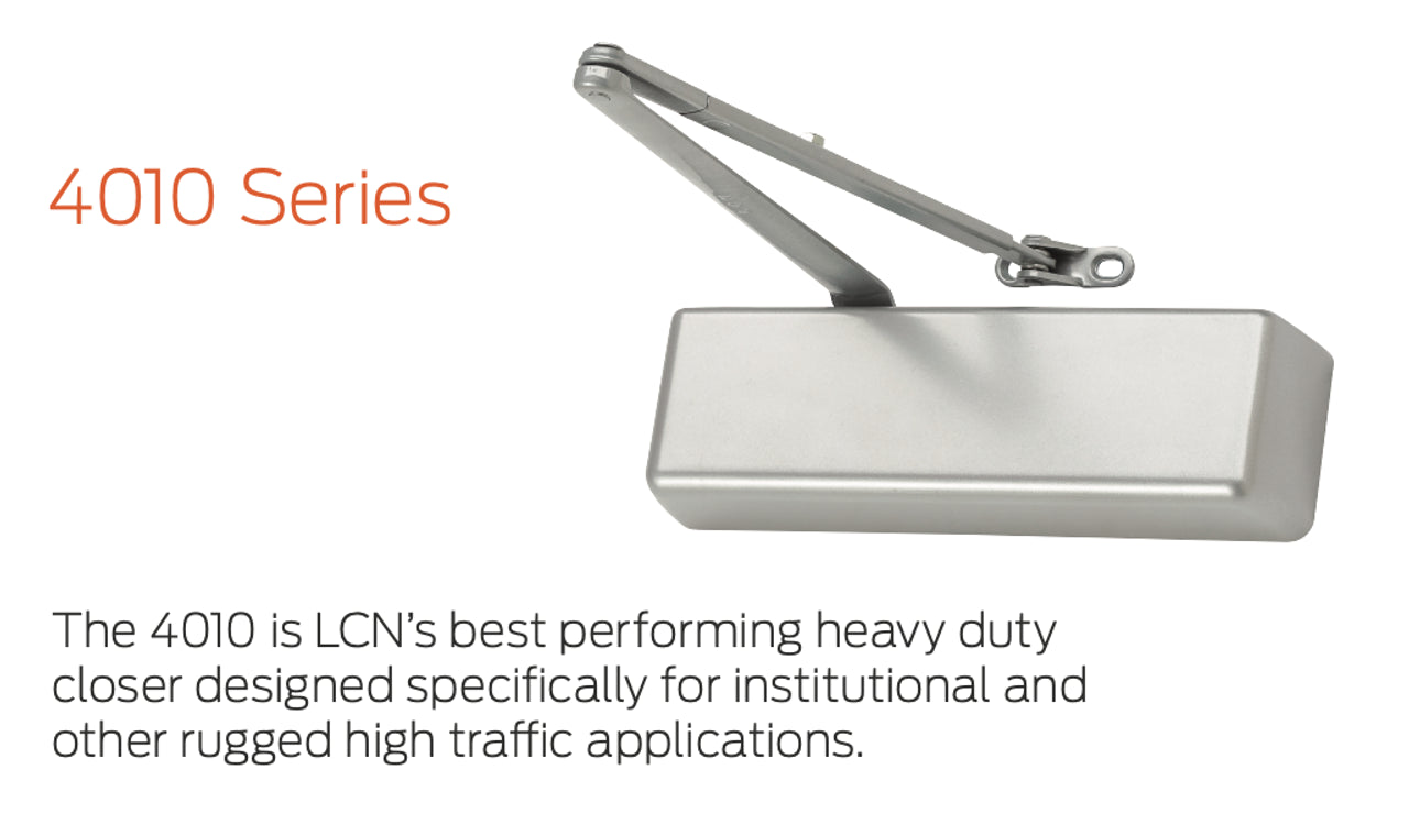 The 4010 is LCN’s best performing Heavy Duty Closer designed specifically for institutional and other rugged high traffic applications.