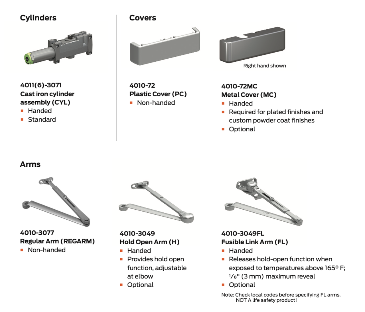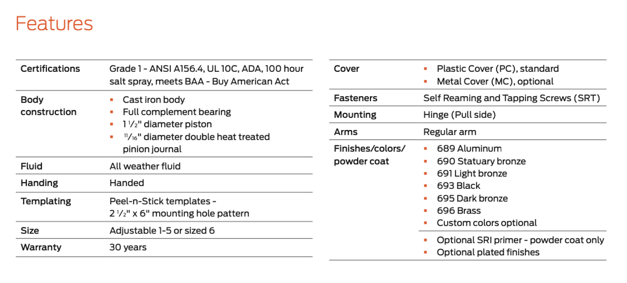 - UL and cUL listed for self-closing doors with regular or fusible link Arms for self-closing doors