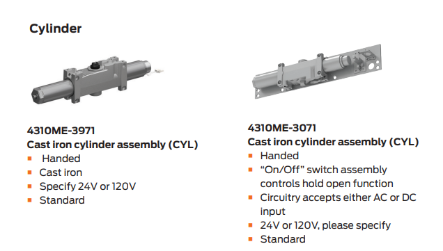- Standard Series Closer shipped with either 24V or 120V cylinder