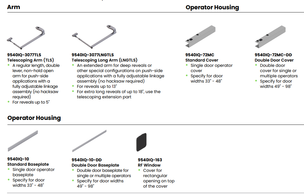 LCN 9540IQ Series Senior Swing, heavy-duty electromechanical swing door operator for double door