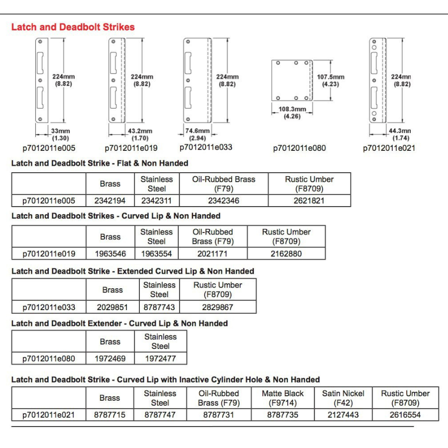 Curved Lip & Non Handed with hole for inactive door cylinder installation screw