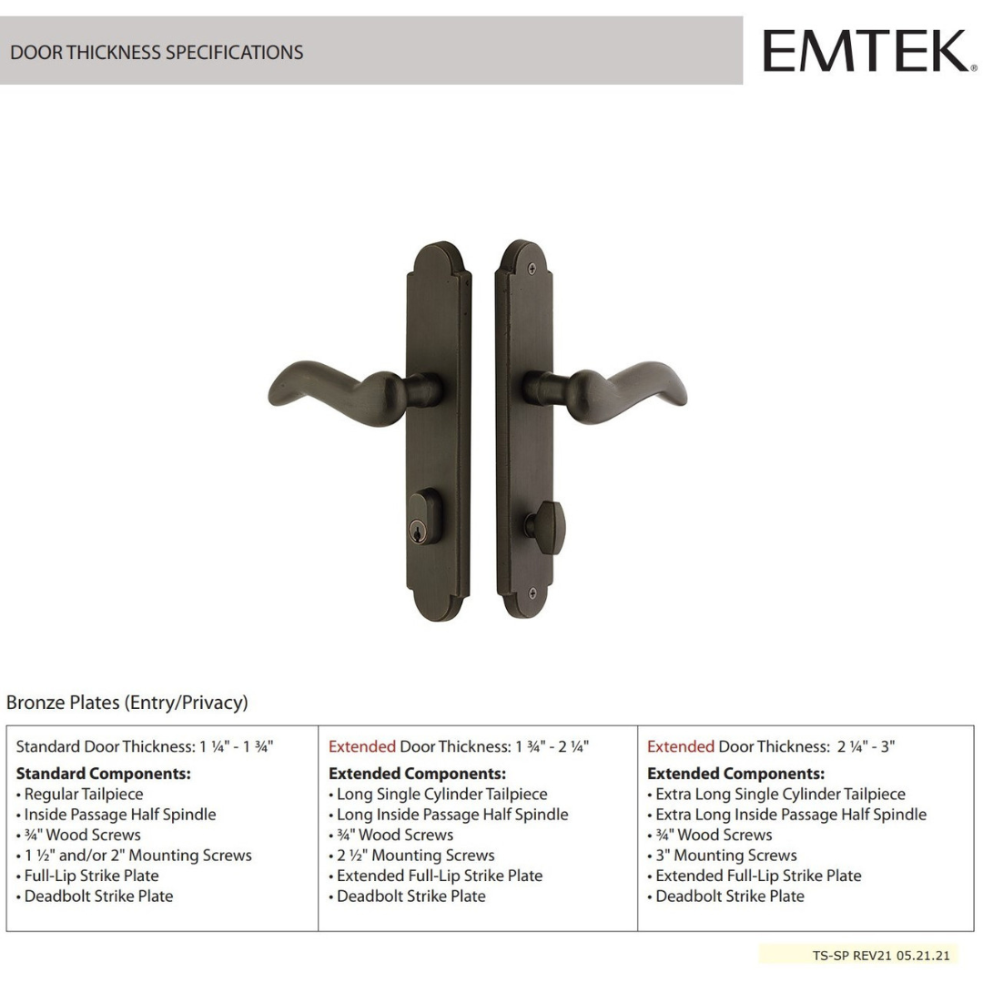 Emtek 4442 STRETTO Narrow Trim Lockset, 2" x 10" Arched Keyed, Brass Tubular, Single Cylinder