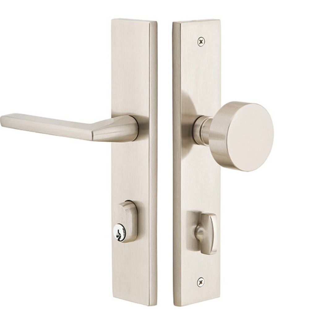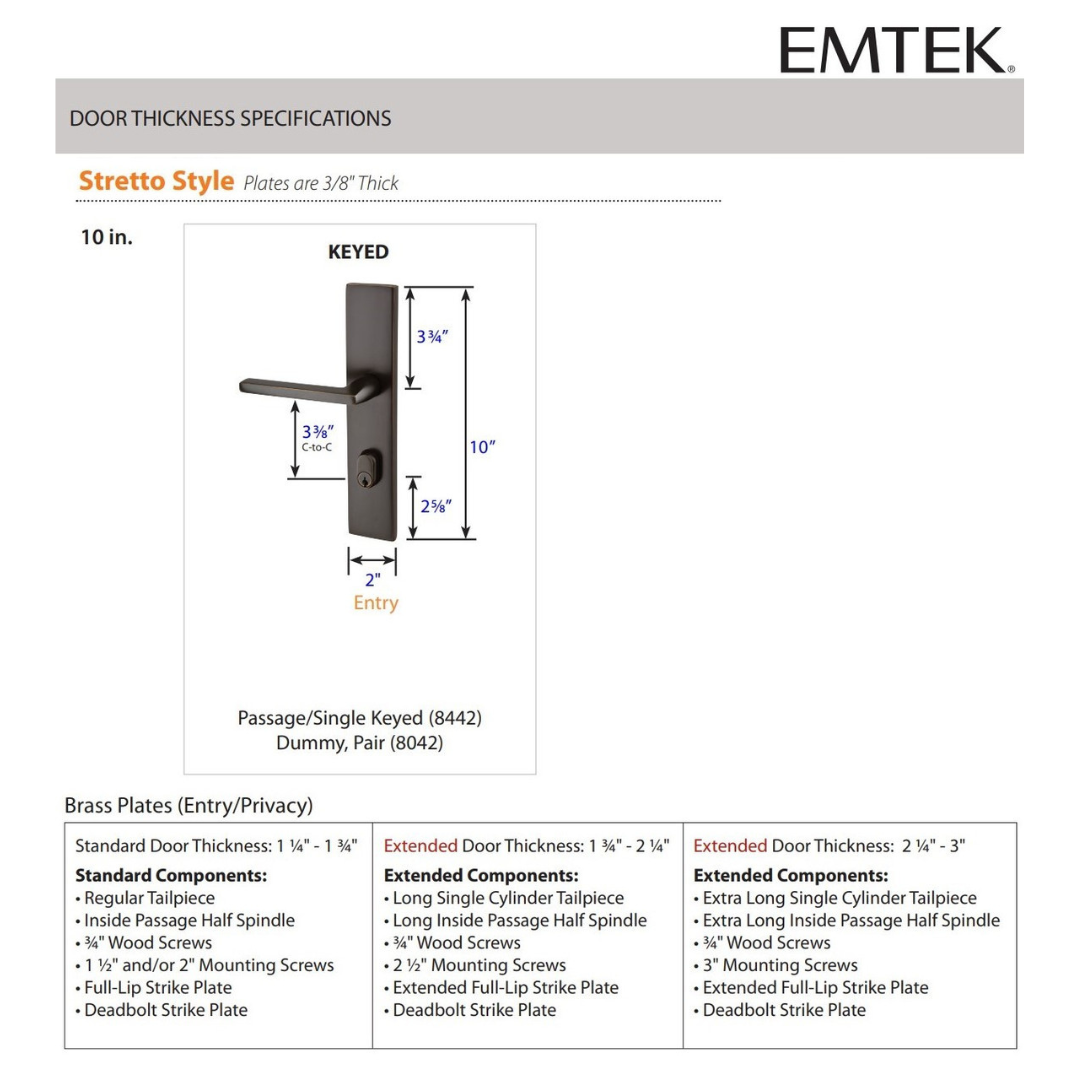Emtek 8042 STRETTO Narrow Trim Lockset, 2" x 10" Modern Rectangular Keyed, Brass Tubular, Dummy (Pair)