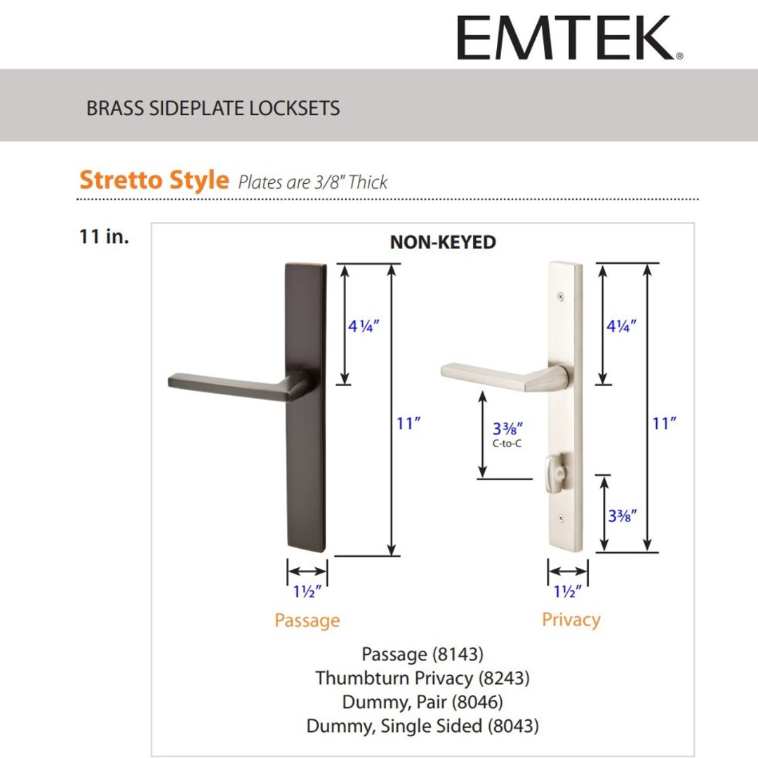 Emtek 8043 STRETTO Narrow Trim Lockset, 1-1/2" x 11" Modern Rectangula – Golden Locks Inc .