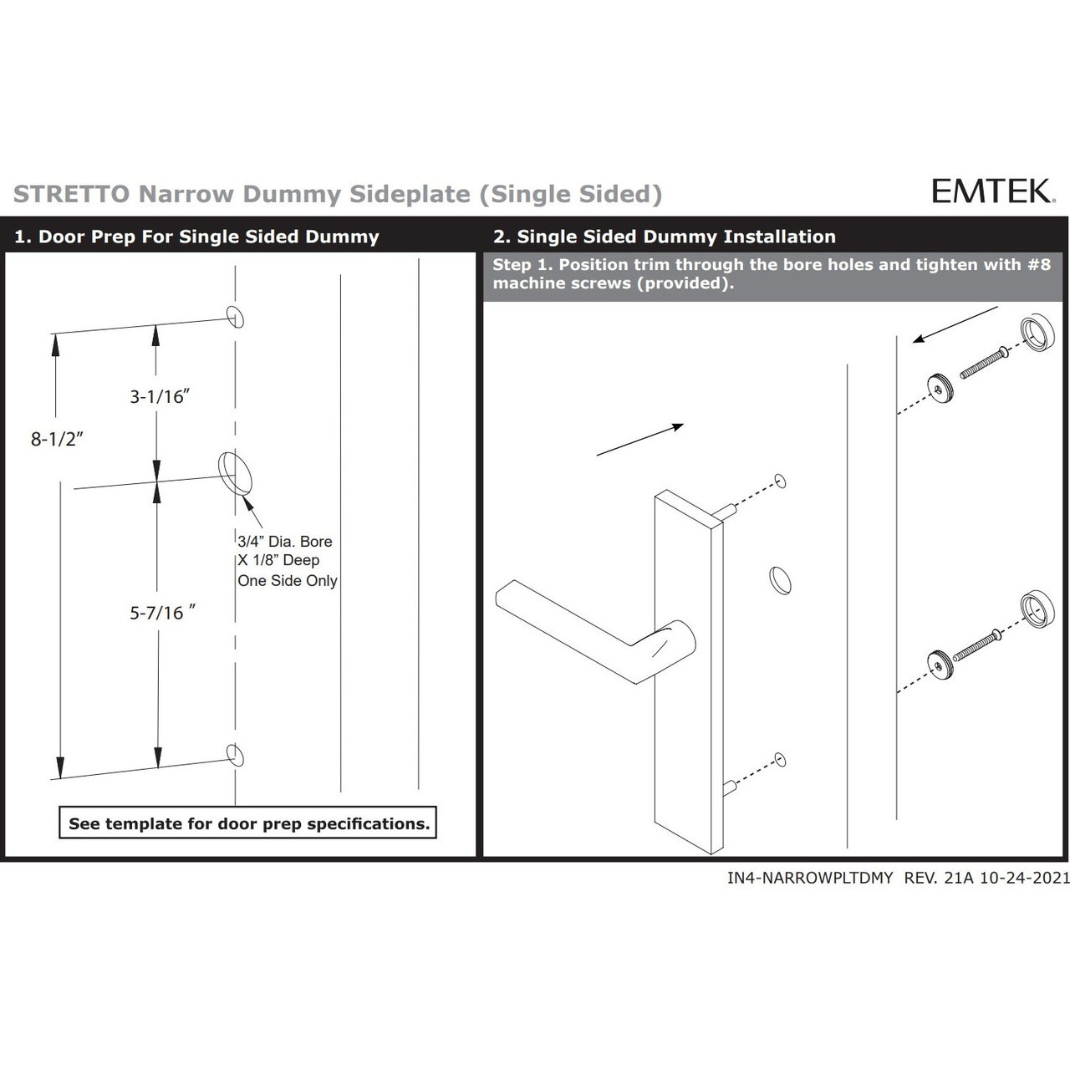 • Narrow 1-1/4" Door Preps, 3-3/8" C-to-C Hole Spacing