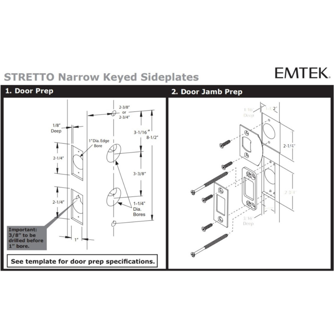 • Narrow 1-1/4" Door Preps, 3-3/8" C-to-C Hole Spacing