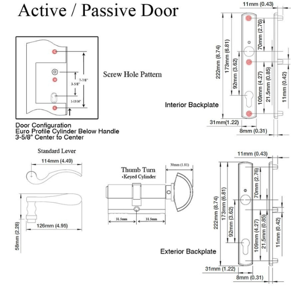 This handle set includes interior and exterior handle levers with backplates and all the necessary installation hardware.