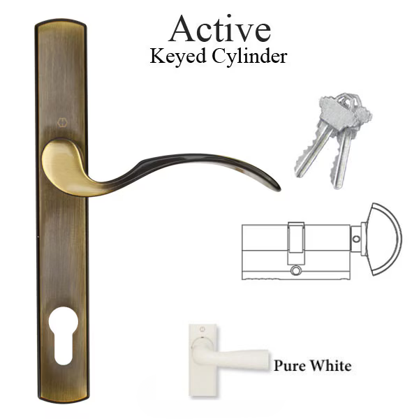 Active HOPPE Multi-point handle set with Munchen lever in antique brass.