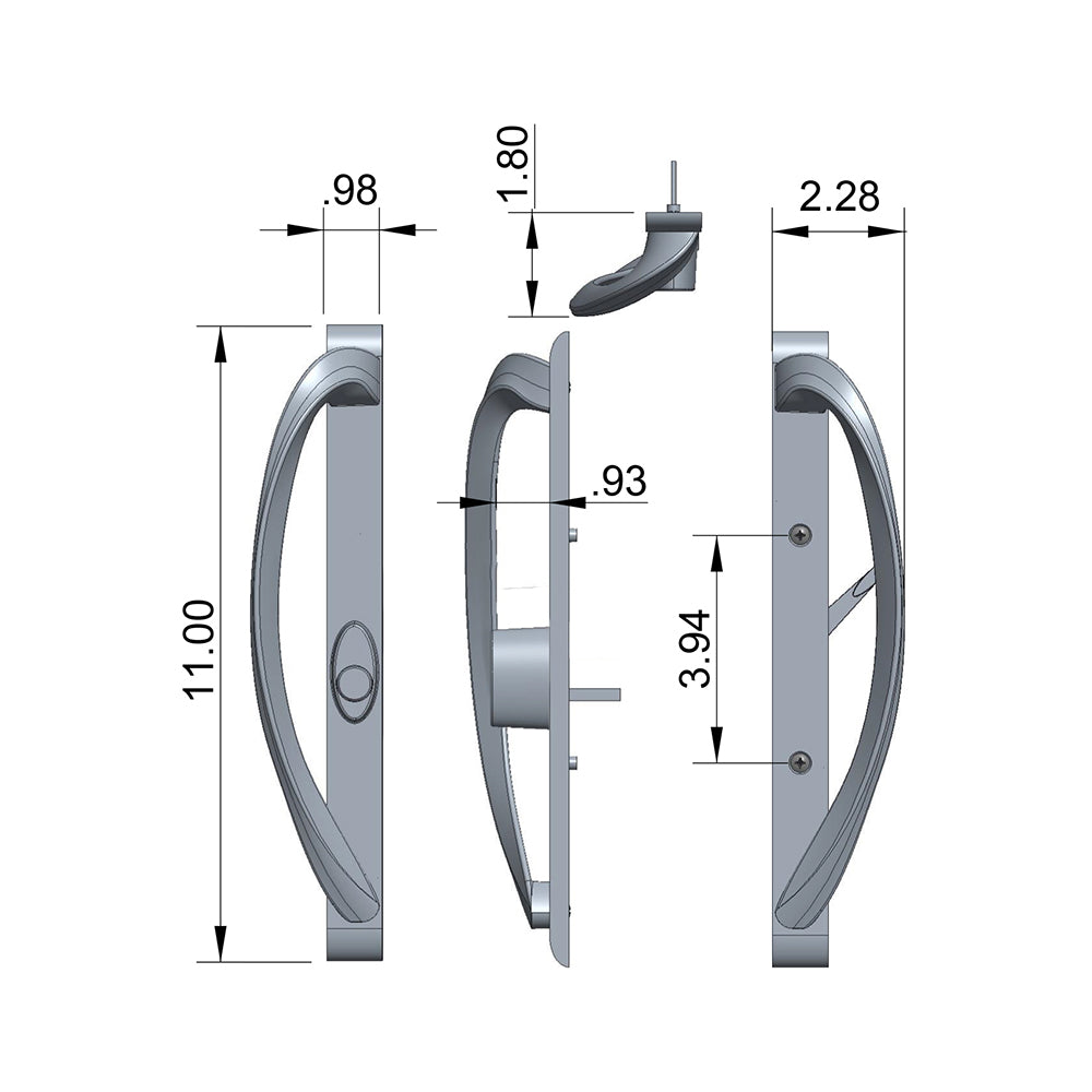 Non-handed and comes standard with extended screwbosses for rigidity. Compatible with single point and Dual Point sliding door locks. Fits standard industry mounting and routing practice. Built to fit door stiles in different thicknesses.