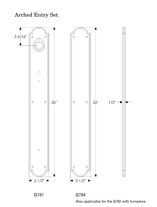 Rocky Mountain Arched Entry Set – 3 1/2″ x 26″ 3 1/2" x 26" - 3 1/2" x 36" Interior Arched Escutcheon