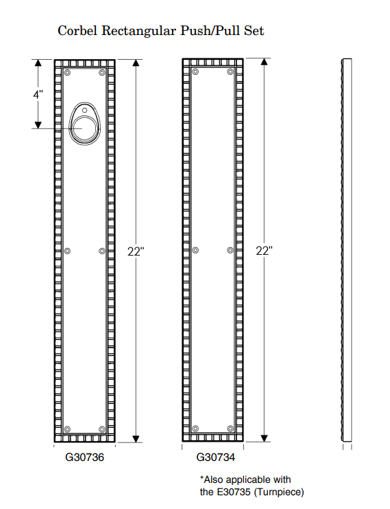 Rocky Mountain Corbel Rectangular Entry Set – 3 1/2″ x 22″ - 3 1/2" x 22" Interior Escutcheon