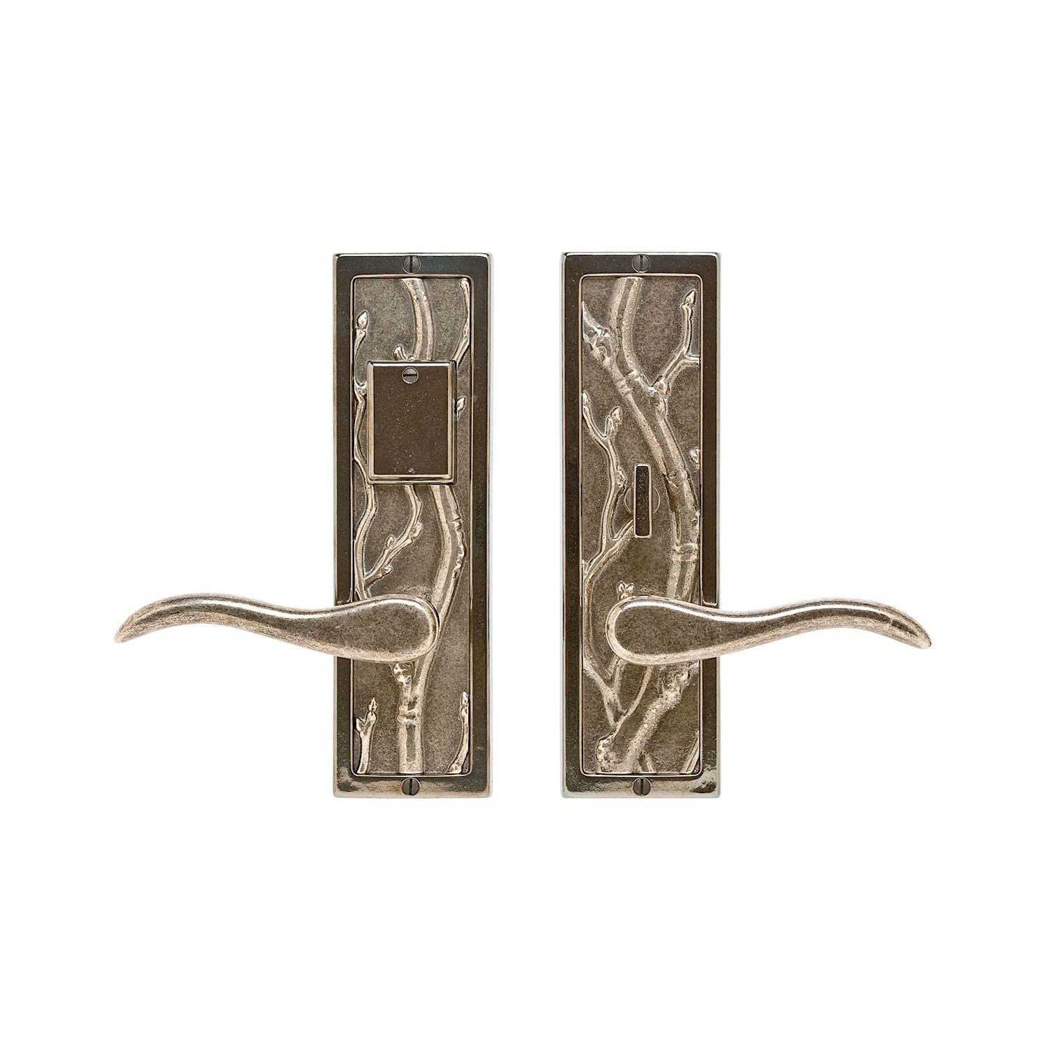 Shown in White Bronze Dark (WD) Escutcheon Frame & White Bronze Medium (WM) Handle & White Bronze Medium (WM) Texture on Branch Texture (BBR)