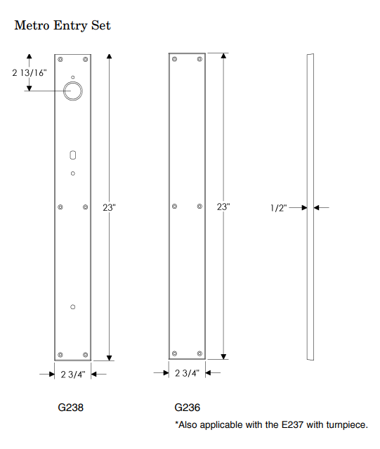 Rocky Mountain Metro Entry Set – 2 3/4″ x 23″ - 2 1/2" x 13" Interior Metro Escutcheon
