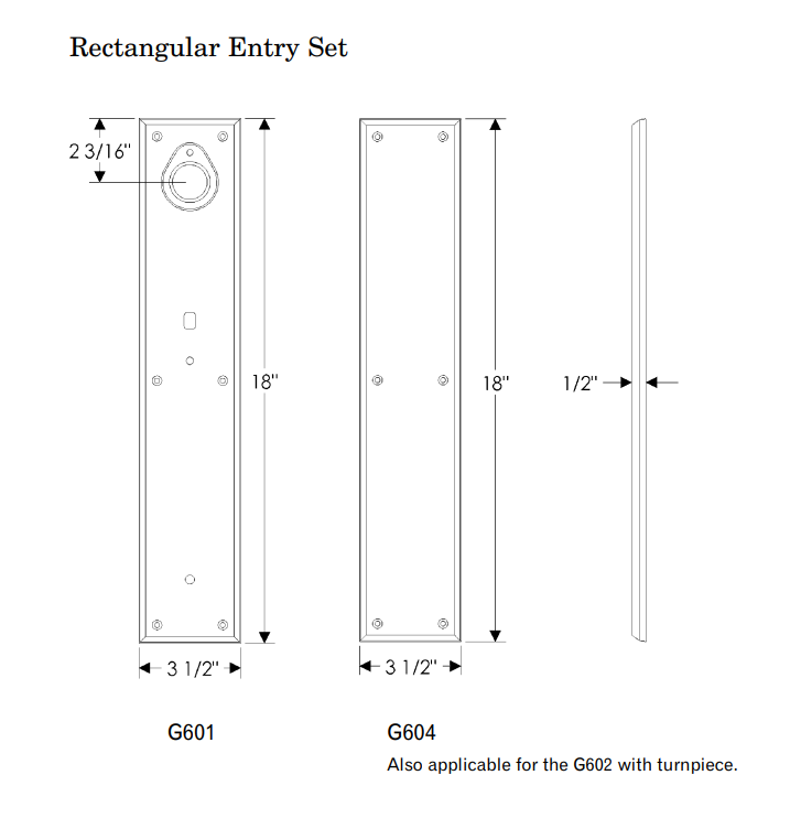Rocky Mountain Rectangular Entry Set – 3 1/2″ x 18″ - 3" x 10" Interior Escutcheon