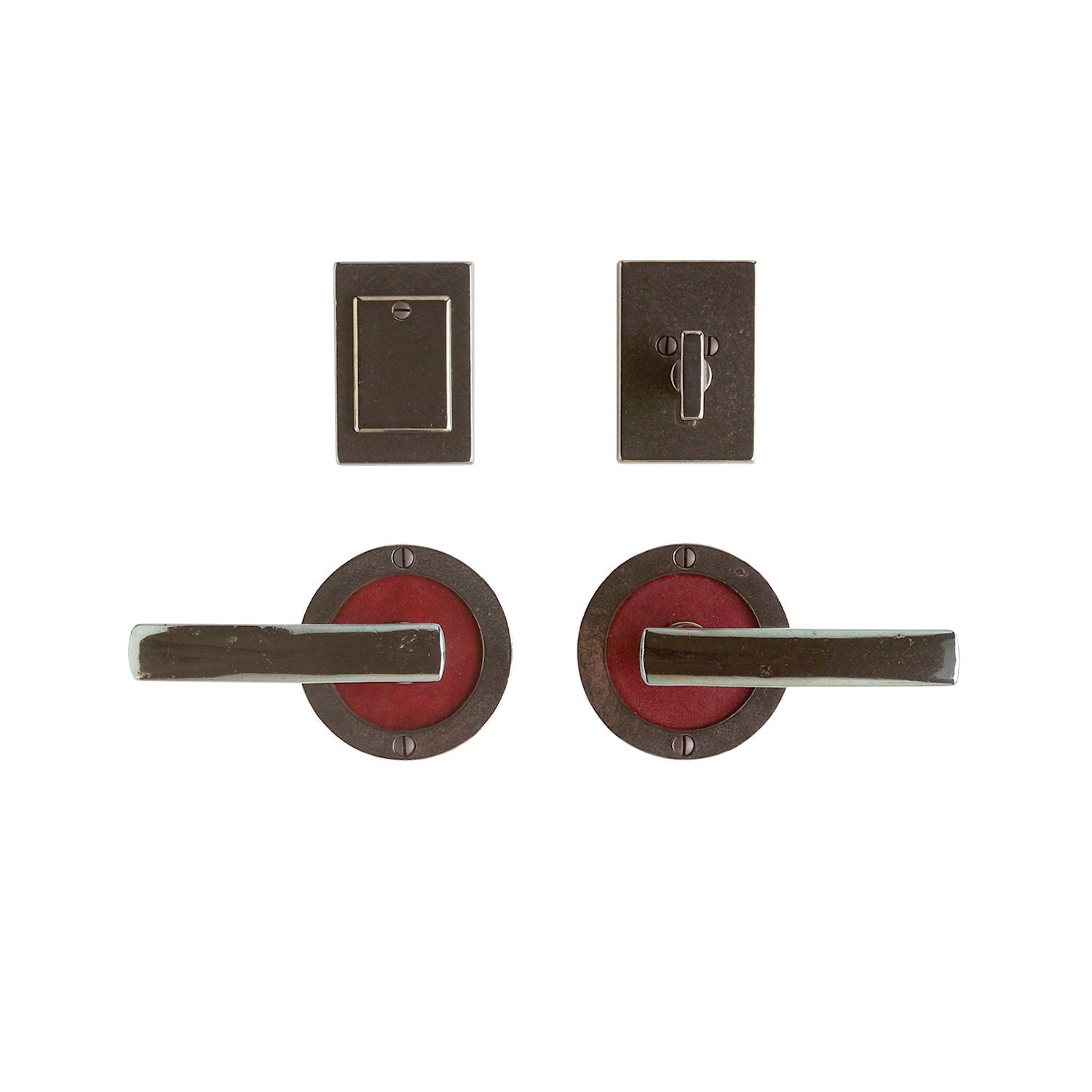 Shown in White Bronze Dark (WD) Escutcheon Frame on Wine Leather (LWI)