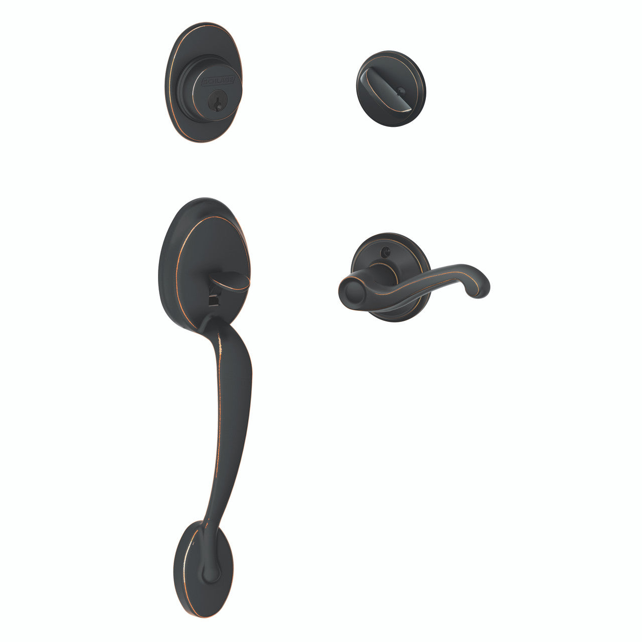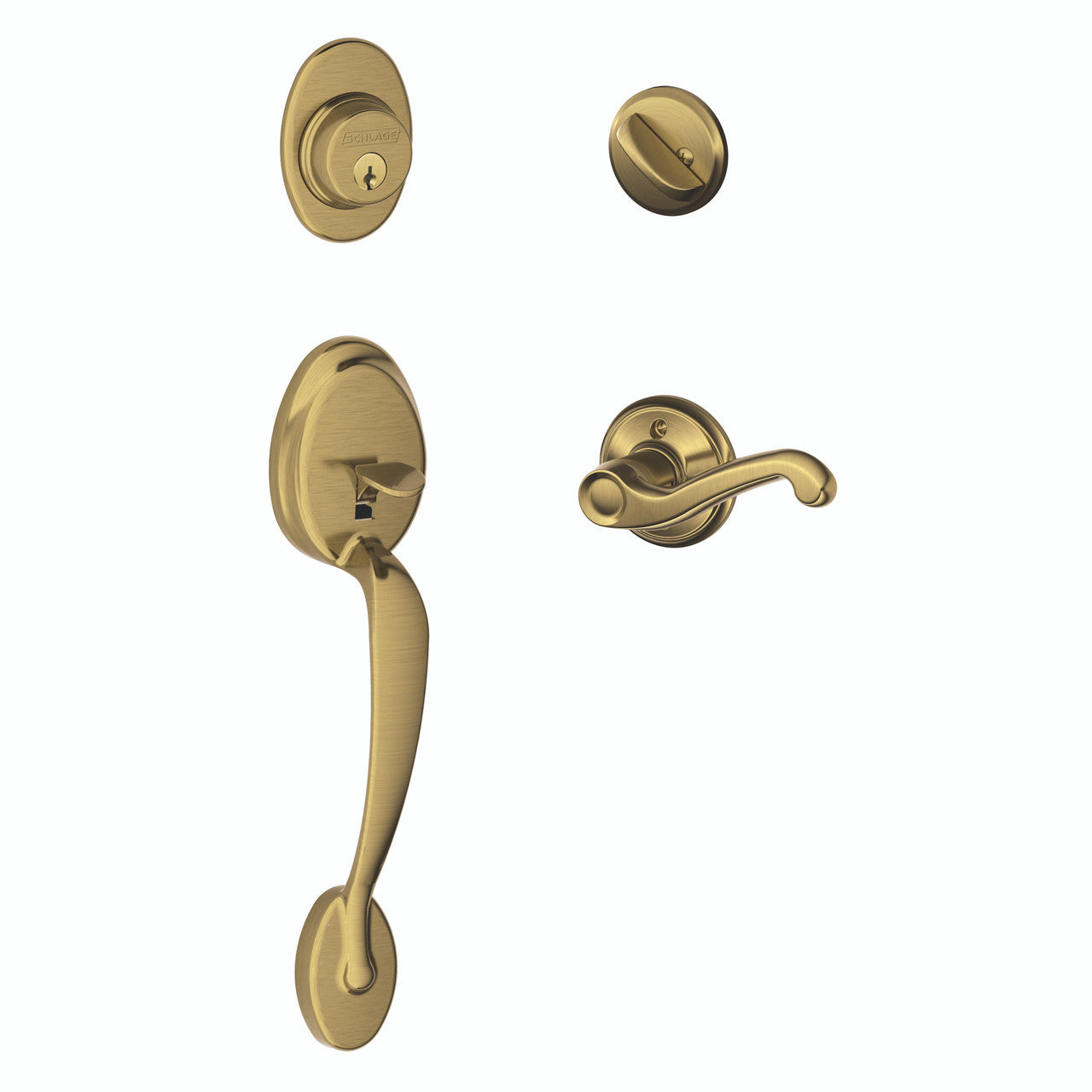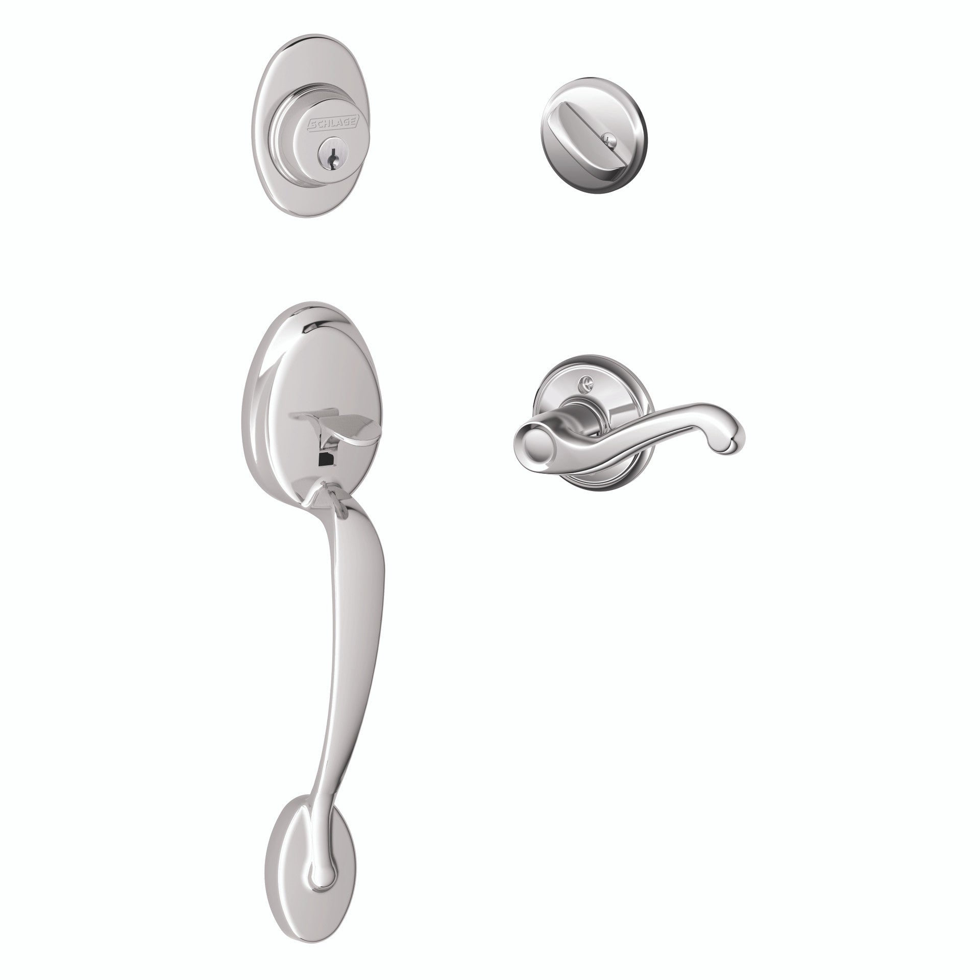 Schlage Residential F60 - Plymouth Sectional Single Cylinder Keyed Entry Handleset with Flair Lever