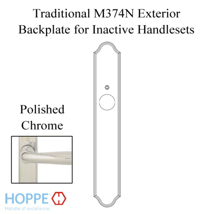 HOPPE TRADITIONAL EXTERIOR BACKPLATE M374N FOR INACTIVE HANDLESETS - POLISHED CHROME